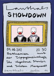 Vielfalt ist das Credo der Veranstaltungsreihe „lauthals“, die am kommenden Donnerstag, 7. 6., um 20.30 Uhr im Kreuzberger Bethanien zum SHOWDOWN lädt. Musik kommt von „The Vagabond Stories“, die Leipziger „Tippgemeinschaft“ liest Prosa, Tristan sorgt für die Lyrik, und all das wird live illustriert von Roland Brückner. Vier Darbietungen für vier Euro, das lohnt. Herzliche Einladung!