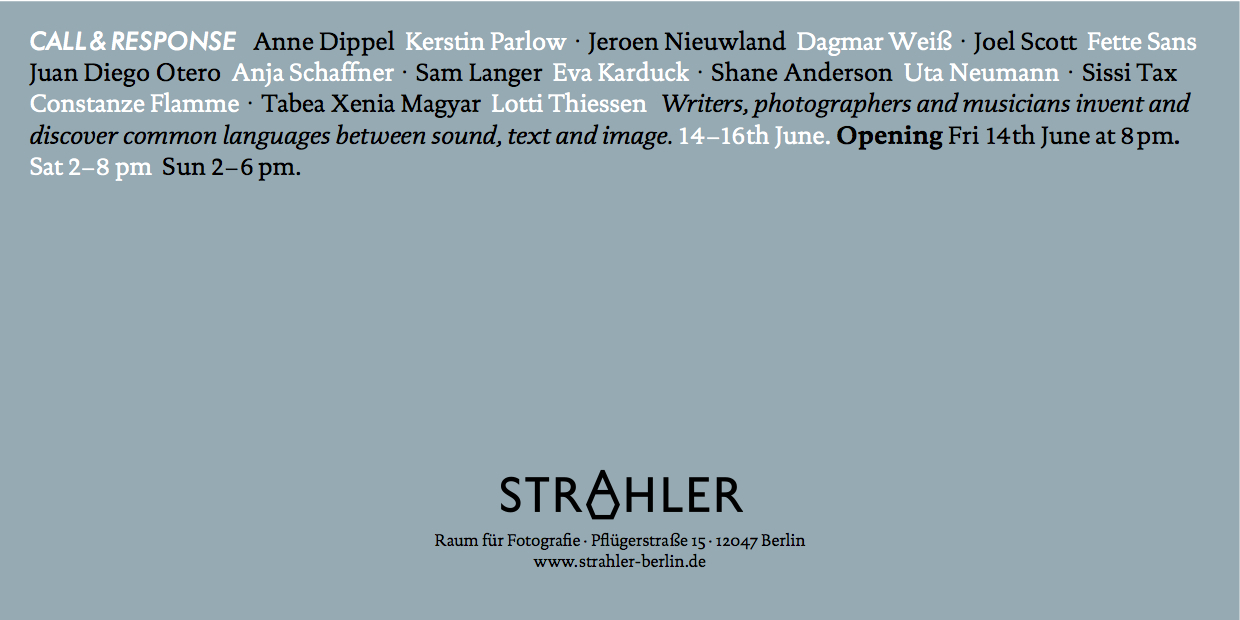 Vom 14.-16.6. findet dieses Wochenende die 15. Ausgabe des Festivals 48-Stunden-Neukölln statt. Mit dabei: Tabea Xenia Magyar als Teil der Ausstellung Call & Response, in der Kollaborationen von Dichter_innen & Photograph_innen gezeigt werden. Eingeplant: Spontanlesungen, Konzerte, Getränke, alles an der Pflügerstraße 15, im schönen Strahler! Ihr Kinderlein kommet!